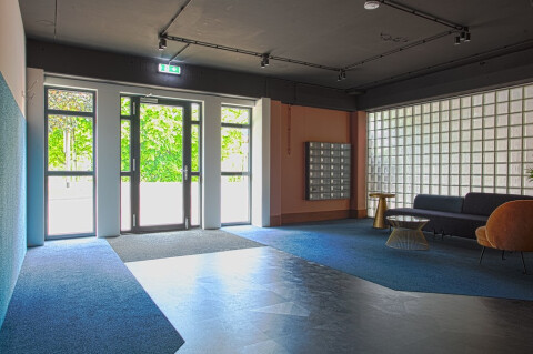 Op de bovenste verdieping is een gezamenlijk dakterras van ruim 50 m² met aangrenzende gemeenschappelijke ruimte. Deze ruimte wordt uitgevoerd met een keuken en lounge meubels. Alle bewoners kunnen hier gebruik van maken.